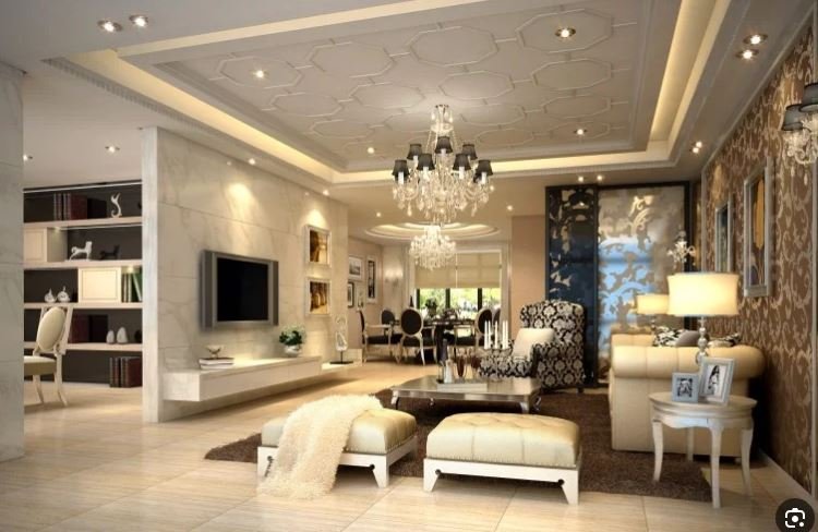 نمط كلاسيكي: يعتمد على التفاصيل، الفخامة، الزخارف، والمواد الراقية مثل الخشب الطبيعي، الجبس، والرخام. الألوان دافئة وغنية.